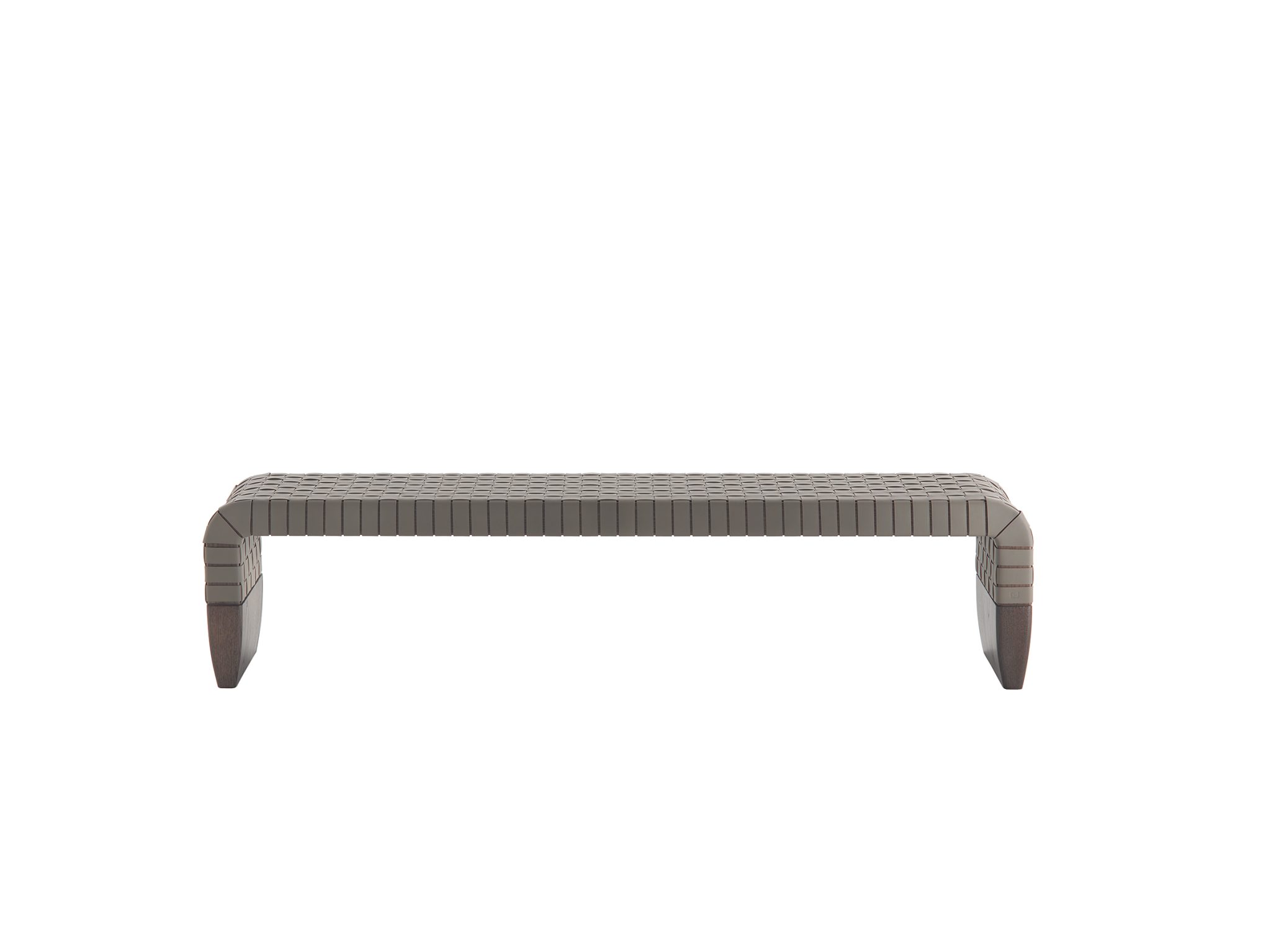 The simplicity of the design is fully consistent with the distinctiveness of theleather weave that upholsters the bench’s seating surface. The wide and 2-mm-thick Cuoio Saddle Extraleather straps, embellished with hand-cut engravings along the entire length, create a motif that isboth geometrical and material. The overall effect is linear, sophisticated and highly modern.