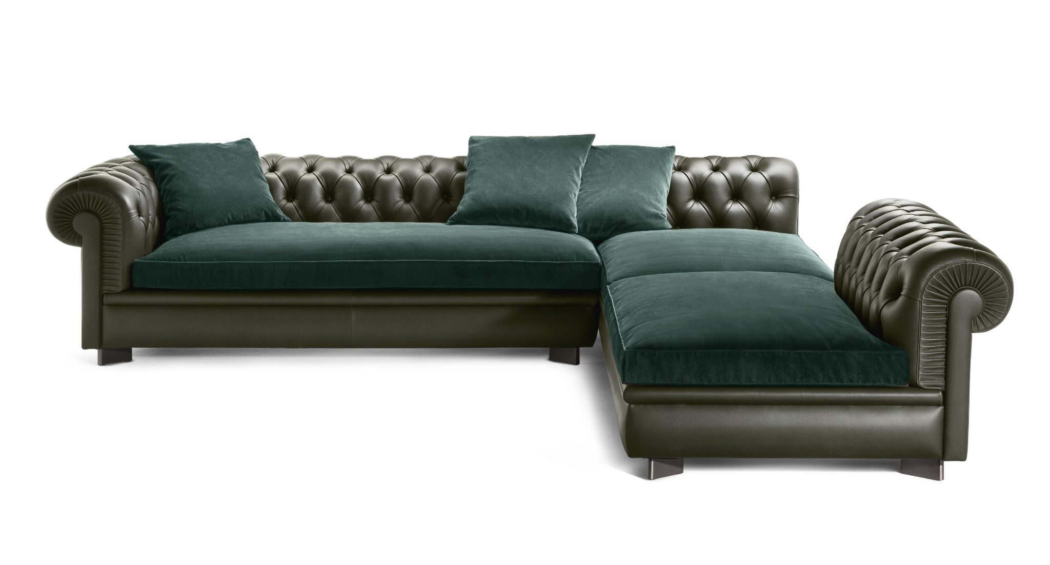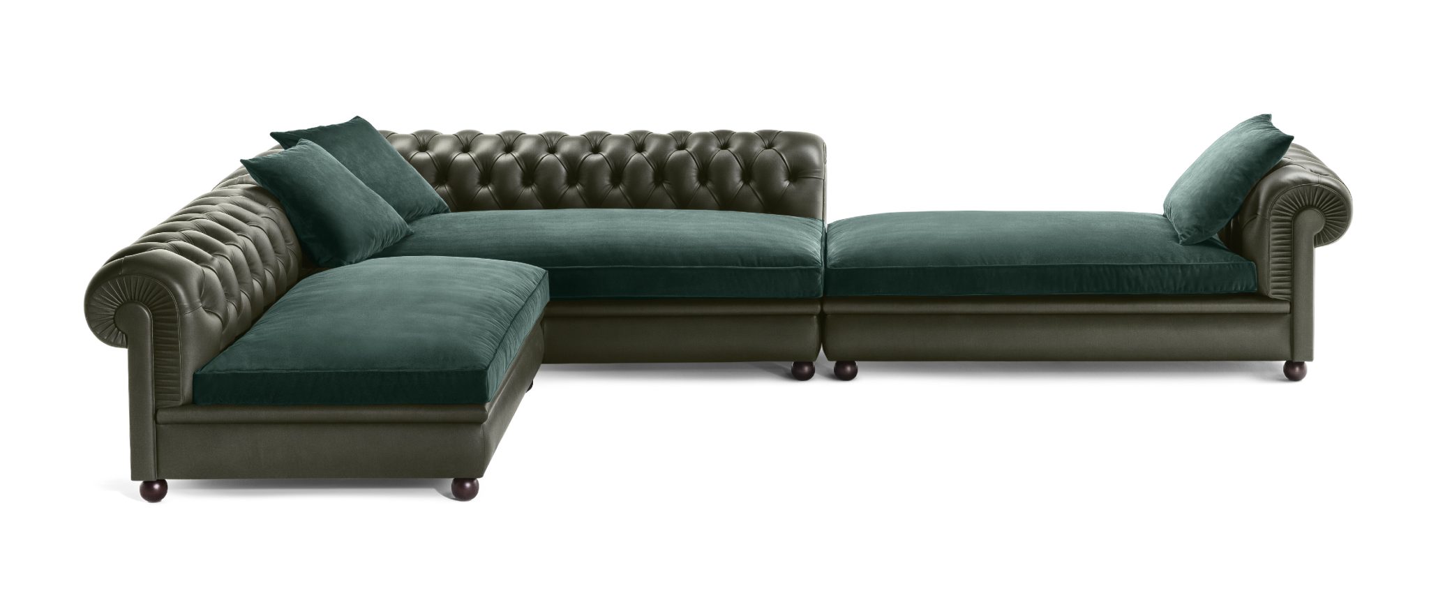 The taste for perfection is recognized in the capitonnée workmanship and in the series of tacks that finish off the leather. The vegetable hair of the back and armrest padding is molded by hand. The spring is obtained with biconical springs tied manually and resting on jute belts.