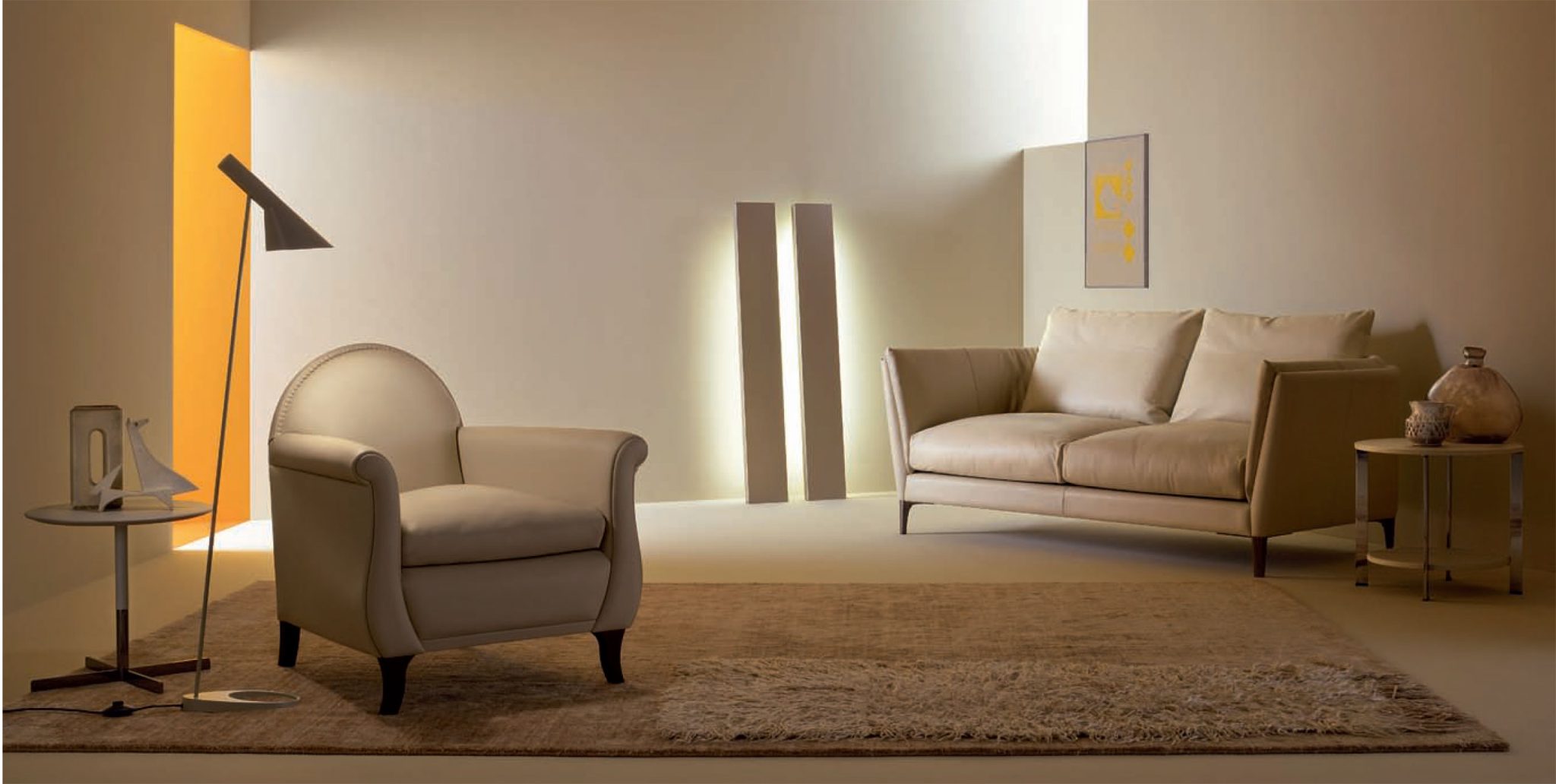 Lyra made its debut as a full leather article in Poltrona Frau’s catalogue of 1934, as a variant of Lira, an earlier model (from 1916) that had a velvet cushion. The 1934 replica still sported a rounded seatback and finishing by means of a row of leather-covered nails, which were the formal traits of Victorian living room furniture, combined with the other comfort-making features of these armchairs: deep seat, comfortable arms, a plush cushion filled with goose down. The padding of rubberised horsehair is applied by hand onto the biconic steel springs of the seat and back springing. The structure is made of seasoned beech wood. Upholstery is available in Pelle Frau® leather from the Color System, in Heritage and in Soul leather. The upholstery is also available in Pelle Frau® leather from the Color System or Heritage leather for the structure and in fabric for the seat cushions.